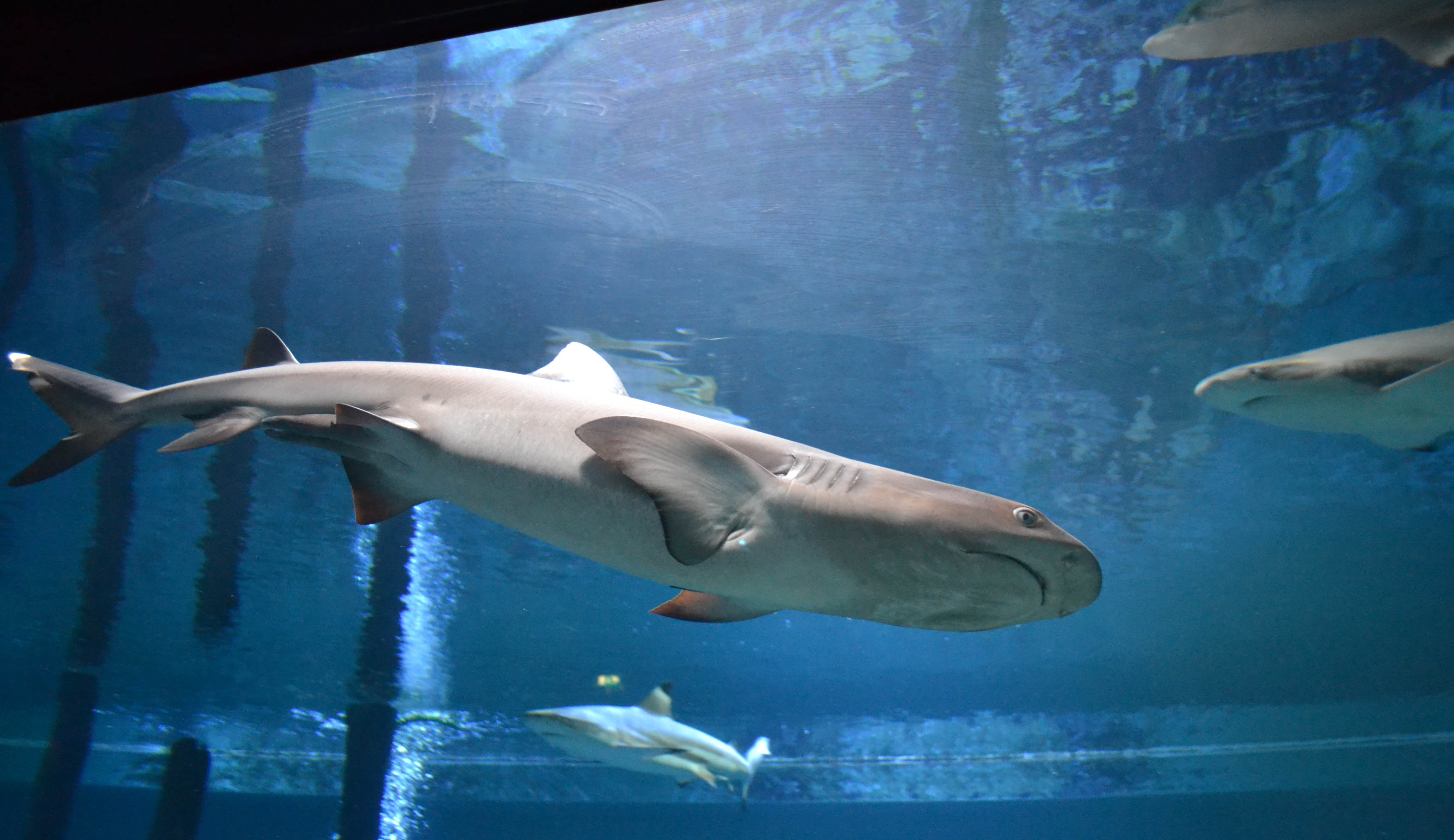 Maar wij kwamen voor de haaien. Bij het bassin aangekomen vielen de haaien me wat tegen. Helemaal geen vrachtwagengrootte. Ik hoopte dat Harm het dan nog wel gaaf genoeg zou vinden. Maar die was druk met de instellingen van zijn camera. We maakten wat foto’s en werden opgehaald door een meisje genaamd Joyce. Kijk, dat schept een band. Ze gaf ons een rondleiding, langs bassins met gewonde diertjes en baby haaitjes. Hoe schattig. Maar het begon wel te kriebelen nu. We hadden er zin in.